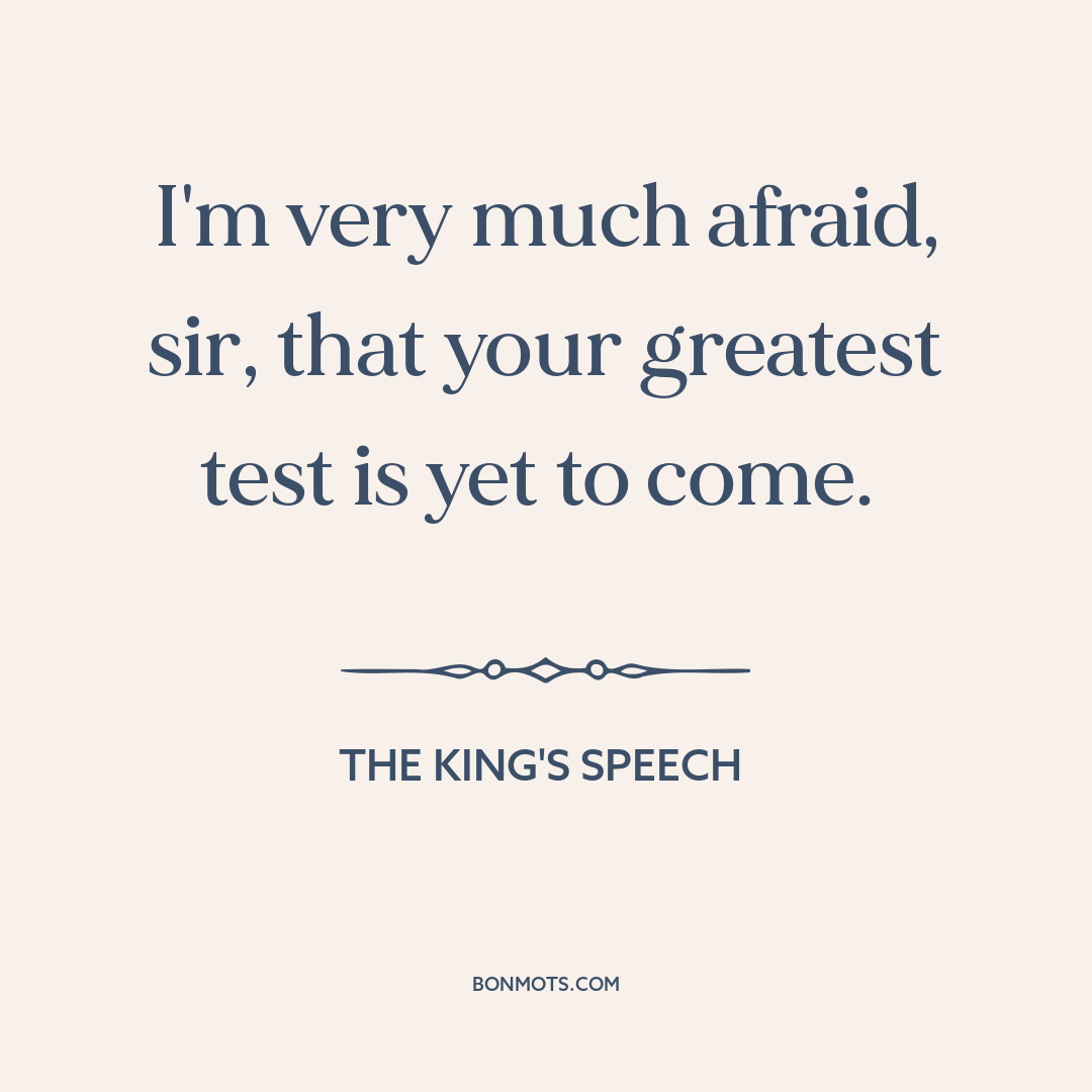 I'm very much afraid, sir, that your greatest test is yet to come.