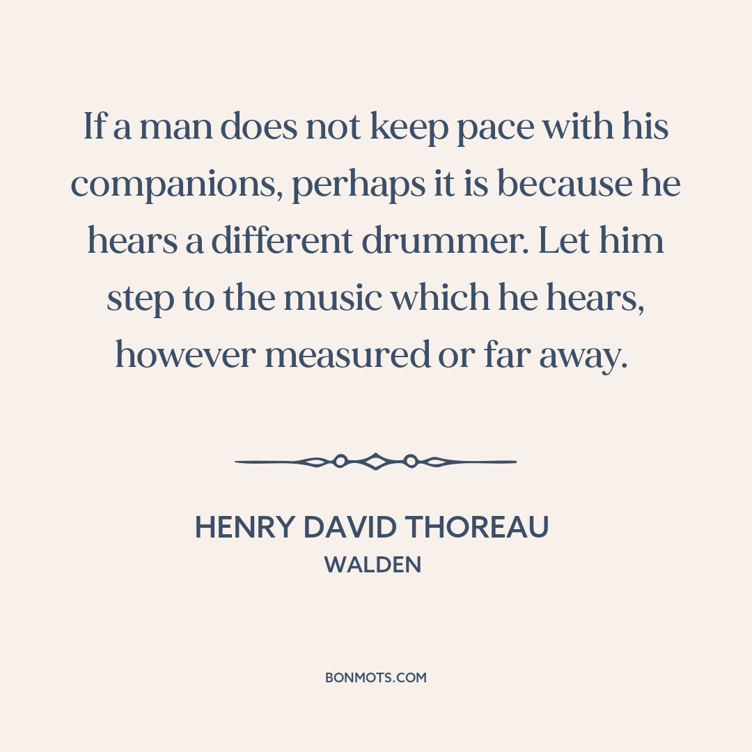 If a man does not keep pace with his companions, perhaps it is because he hears a different drummer. Let him step to the music which he hears, however measured or far away.