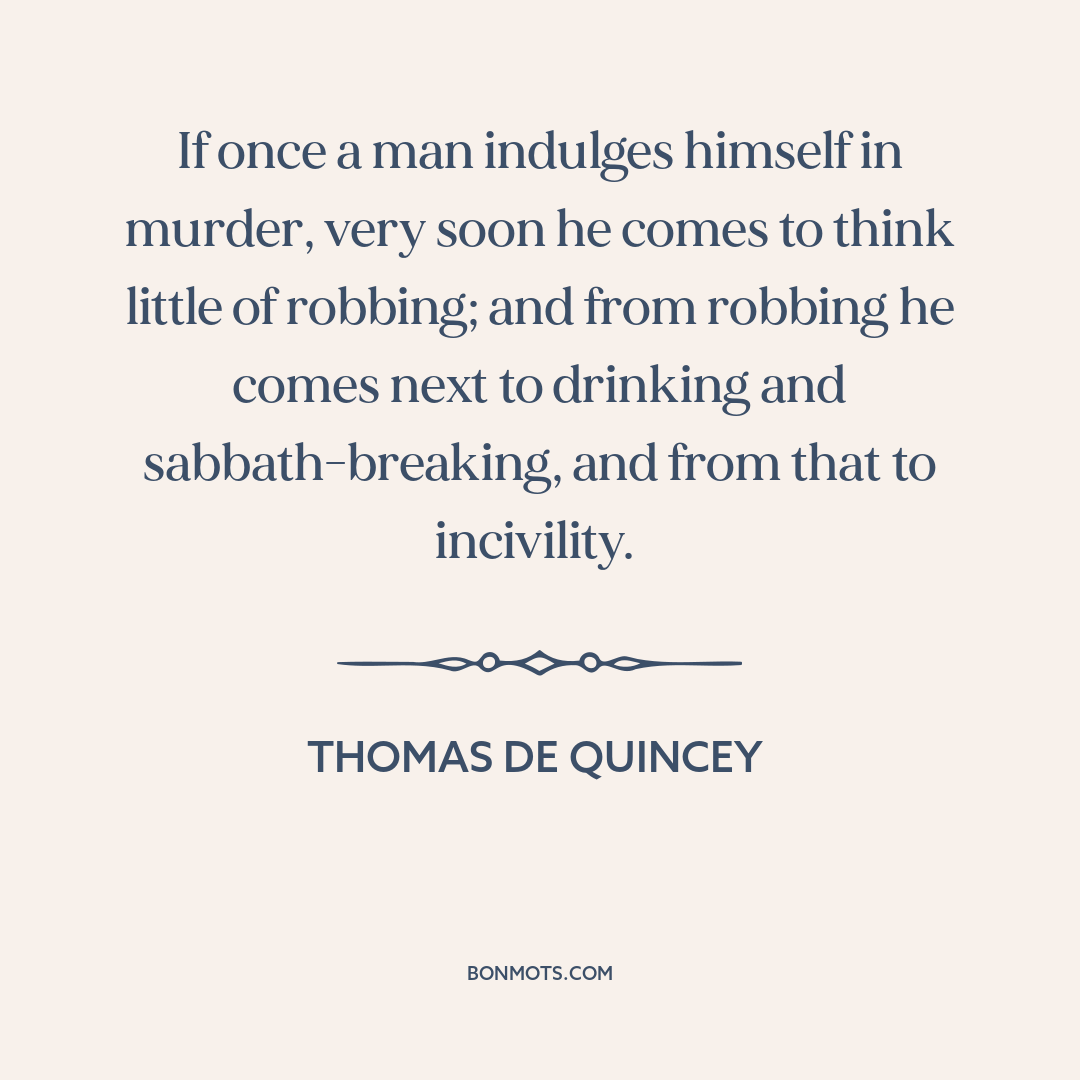 If once a man indulges himself in murder, very soon he comes to think little of robbing; and from robbing he comes next to drinking and sabbath-breaking, and from that to incivility.