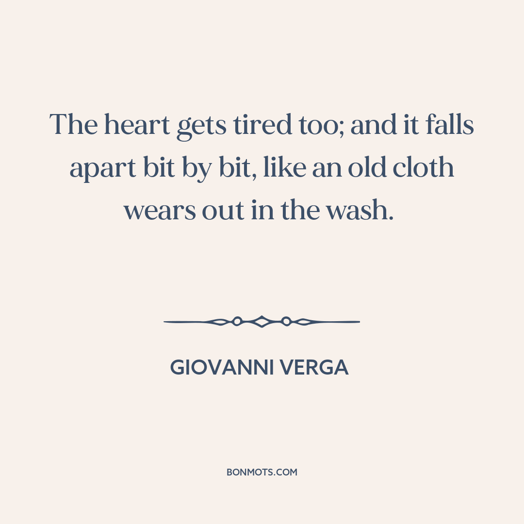 The heart gets tired too; and it falls apart bit by bit, like an old cloth wears out in the wash.