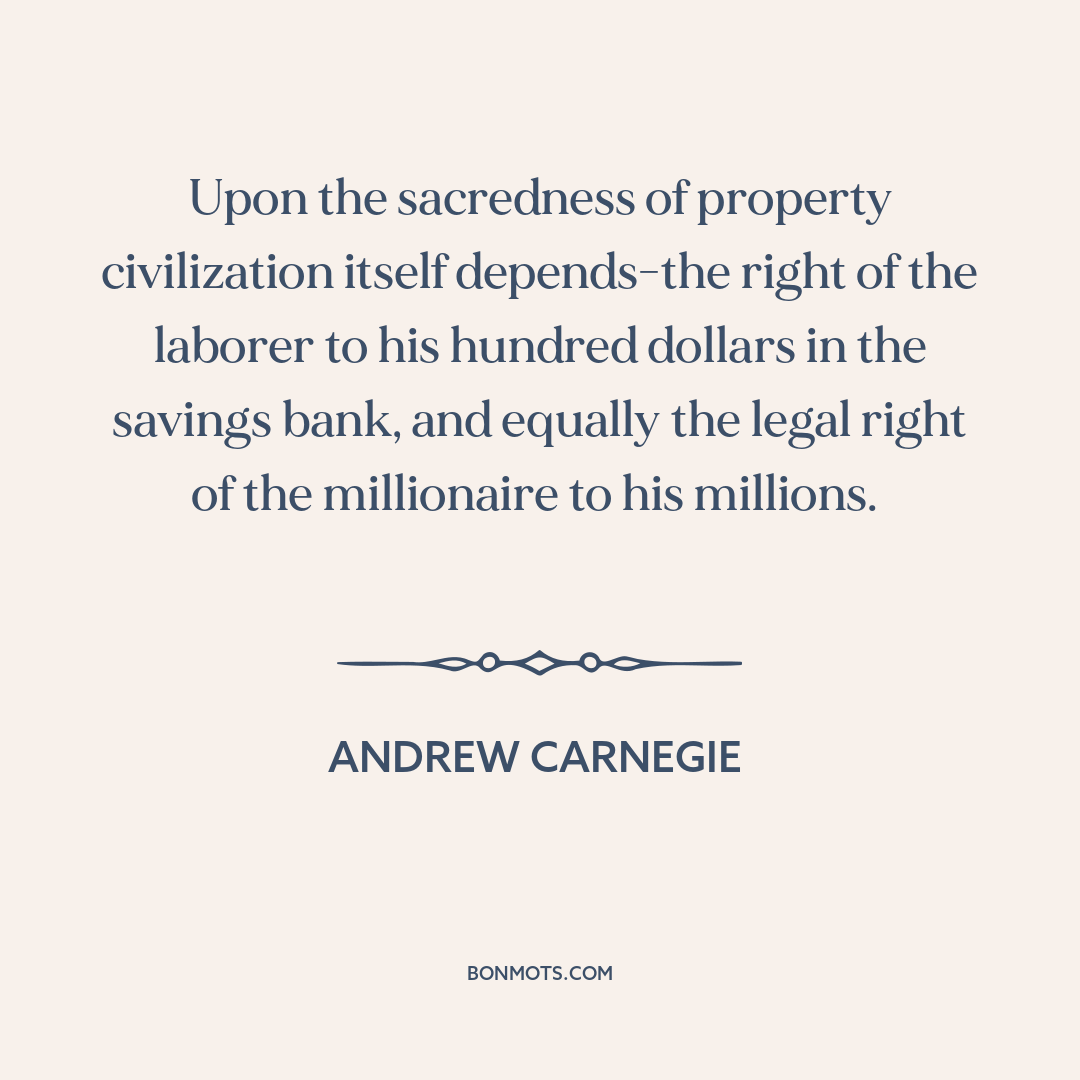 Upon the sacredness of property civilization itself depends-the right of the laborer to his hundred dollars in the savings bank, and equally the legal right of the millionaire to his millions.