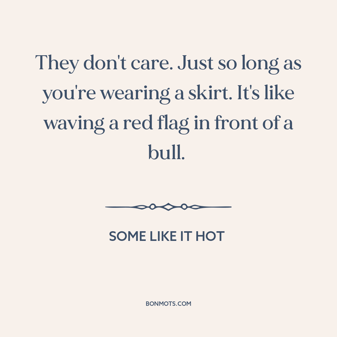 They don't care. Just so long as you're wearing a skirt. It's like waving a red flag in front of a bull.