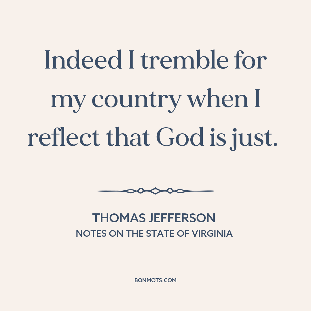 Indeed I tremble for my country when I reflect that God is just.