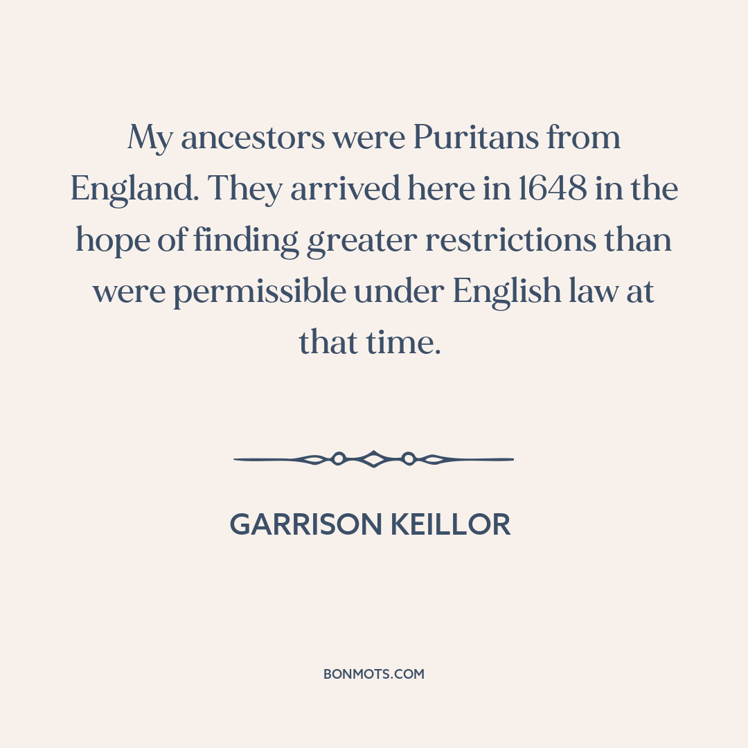 My ancestors were Puritans from England. They arrived here in 1648 in the hope of finding greater restrictions than were permissible under English law at that time.