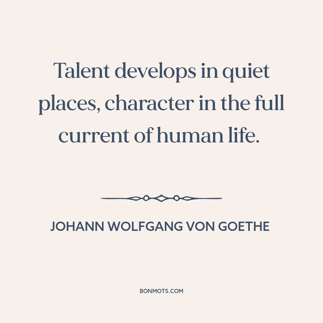 Talent develops in quiet places, character in the full current of human life.