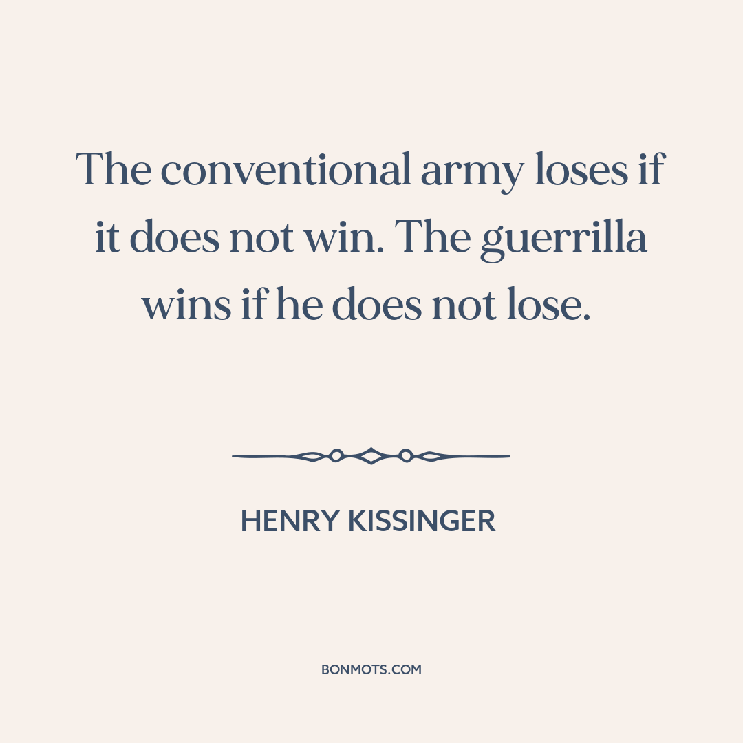 The conventional army loses if it does not win. The guerrilla wins if he does not lose.