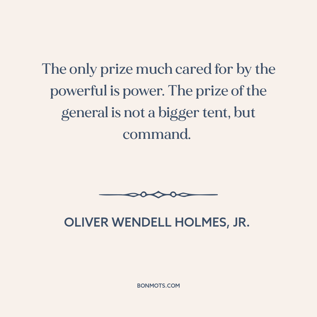 The only prize much cared for by the powerful is power. The prize of the general is not a bigger tent, but command.