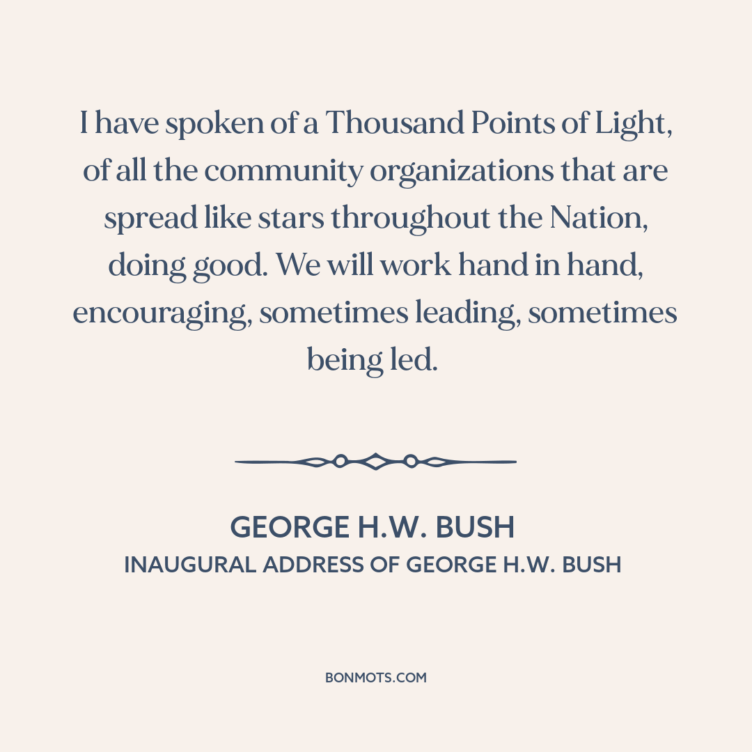 I have spoken of a Thousand Points of Light, of all the community organizations that are spread like stars throughout the Nation, doing good. We will work hand in hand, encouraging, sometimes leading, sometimes being led.