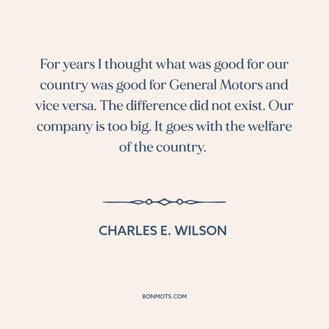 For years I thought what was good for our country was good for General Motors and vice versa. The difference did not exist. Our company is too big. It goes with the welfare of the country.