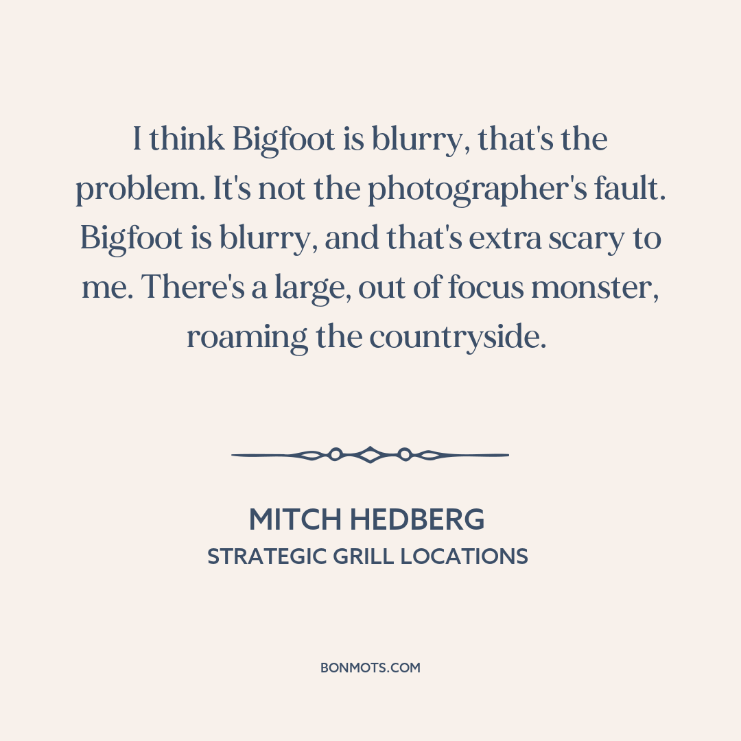 I think Bigfoot is blurry, that's the problem. It's not the photographer's fault. Bigfoot is blurry, and that's extra scary to me. There's a large, out of focus monster, roaming the countryside.