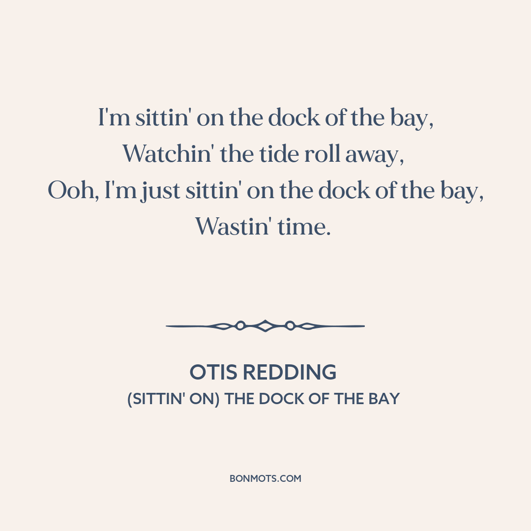Redding, Otis and Steve Cropper. "(Sittin' On) The Dock of the Bay." Performed by Otis Redding. The Dock of the Bay. Volt Records/Atco Records, 1968.