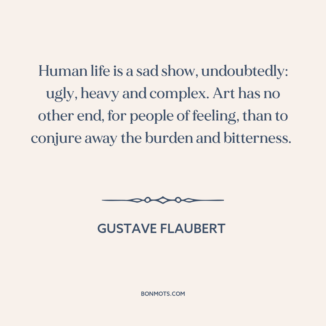 Human life is a sad show, undoubtedly: ugly, heavy and complex. Art has no other end, for people of feeling, than to conjure away the burden and bitterness.
