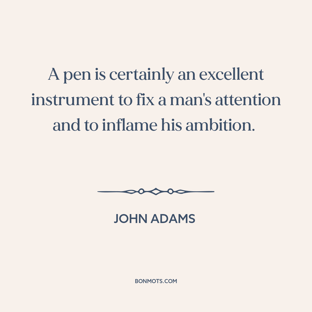 A pen is certainly an excellent instrument to fix a man's attention and to inflame his ambition.