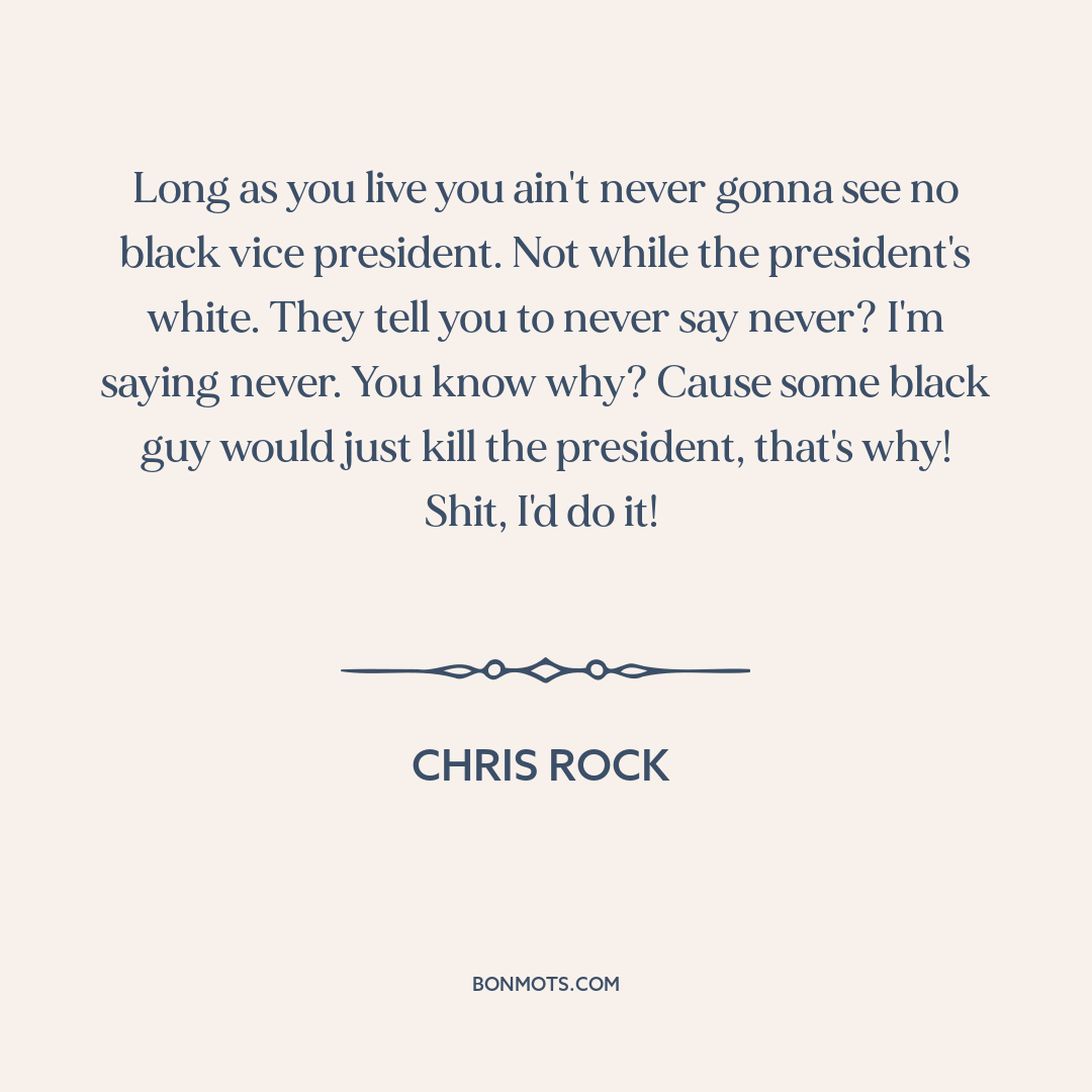 Long as you live you ain't never gonna see no black vice president. Not while the president's white. They tell you to never say never? I'm saying never. You know why? Cause some black guy would just kill the president, that's why! Shit, I'd do it!