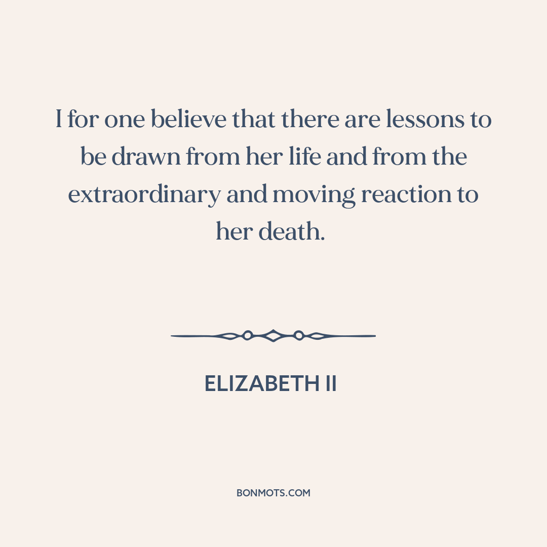 I for one believe that there are lessons to be drawn from her life and from the extraordinary and moving reaction to her death.