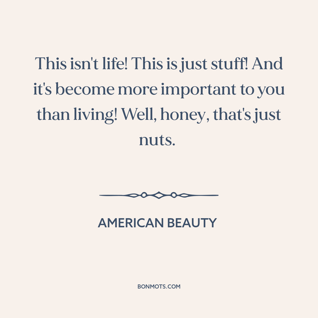 This isn't life! This is just stuff! And it's become more important to you than living! Well, honey, that's just nuts.