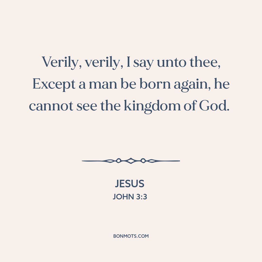 Verily, verily, I say unto thee, Except a man be born again, he cannot see the kingdom of God.