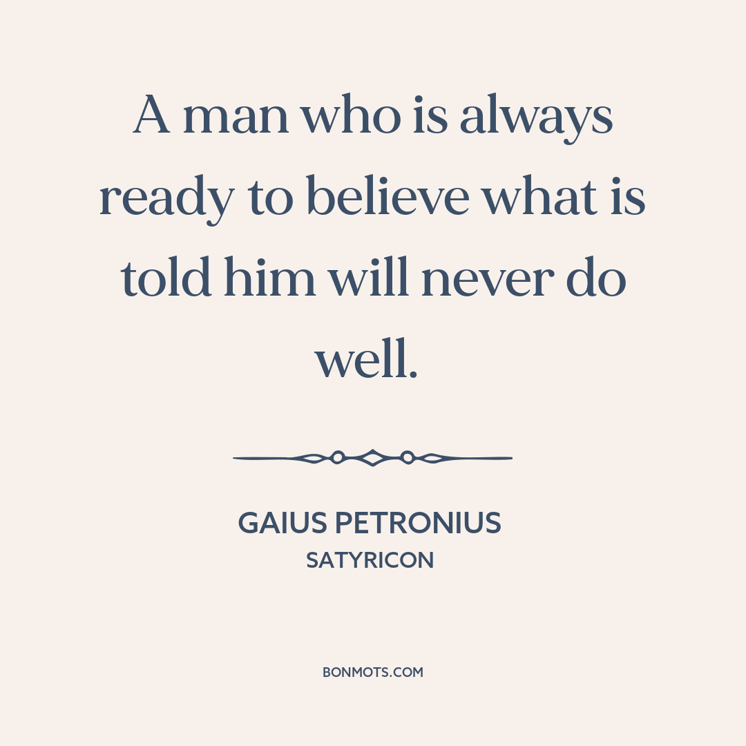 A man who is always ready to believe what is told him will never do well.