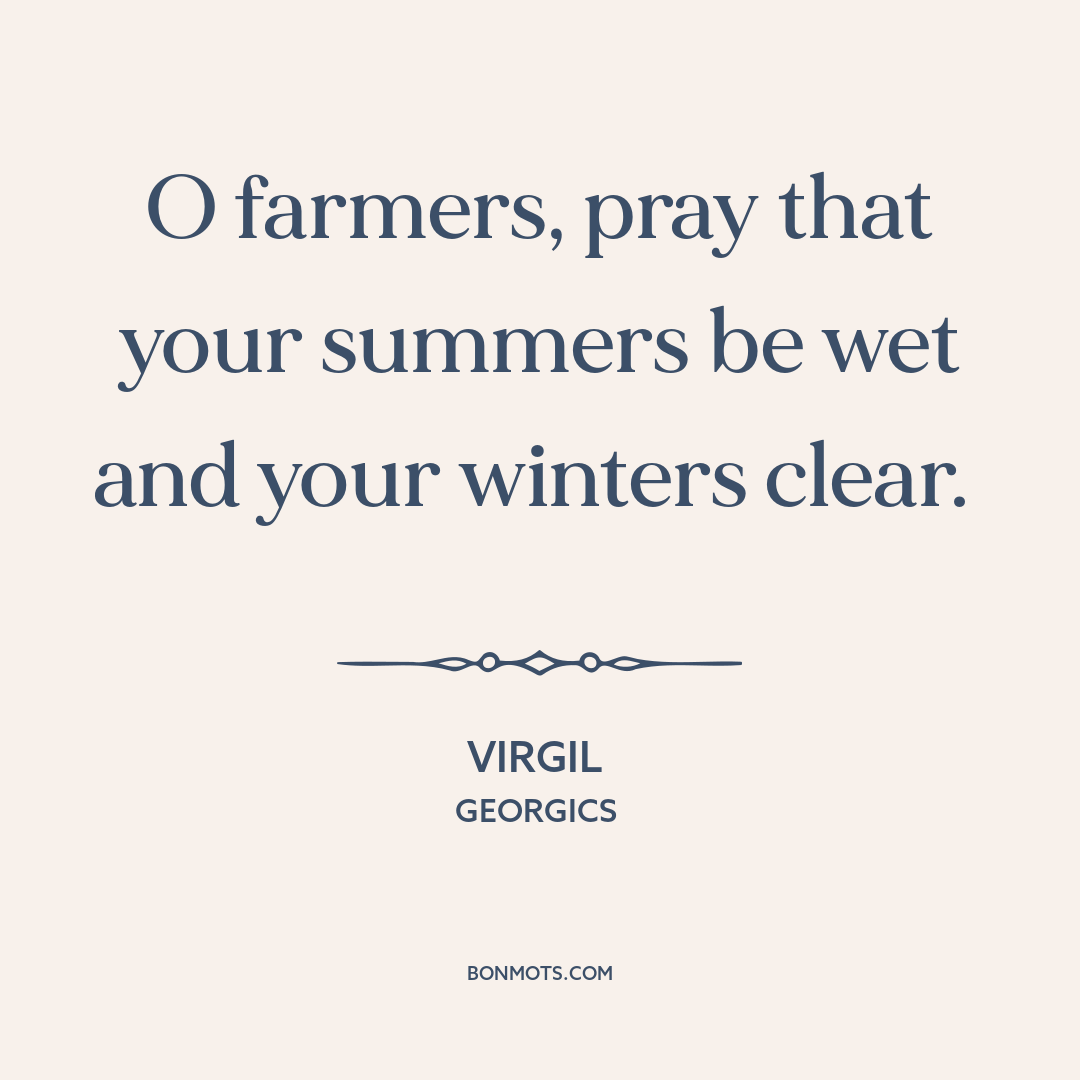 O farmers, pray that your summers be wet and your winters clear.