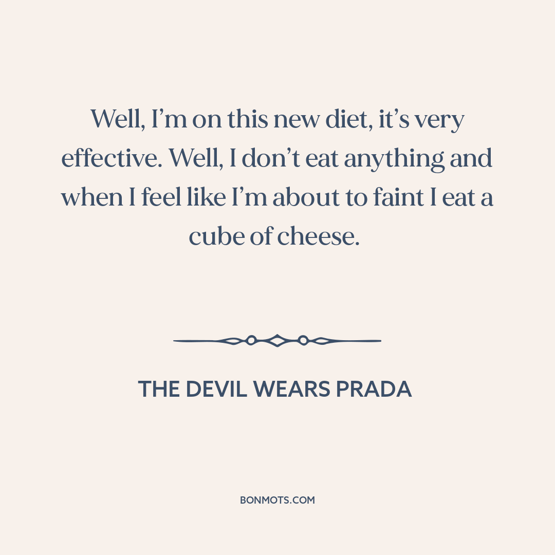 Well, I’m on this new diet, it’s very effective. Well, I don’t eat anything and when I feel like I’m about to faint I eat a cube of cheese.