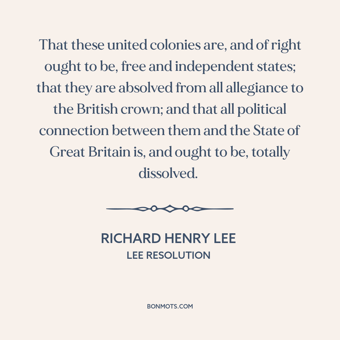 That these united colonies are, and of right ought to be, free and independent states; that they are absolved from all allegiance to the British crown; and that all political connection between them and the State of Great Britain is, and ought to be, totally dissolved.