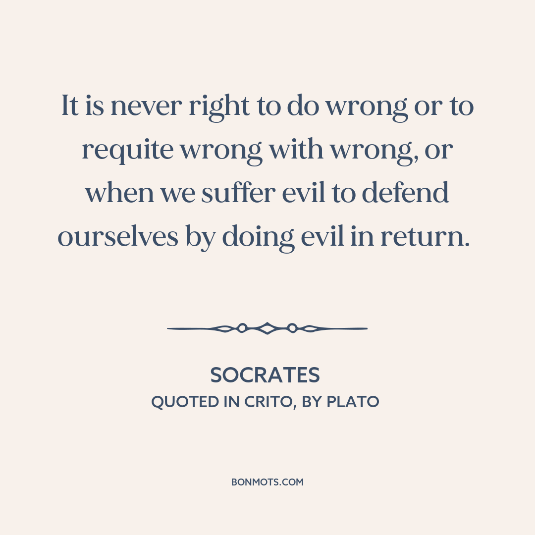 It is never right to do wrong or to requite wrong with wrong, or when we suffer evil to defend ourselves by doing evil in return.