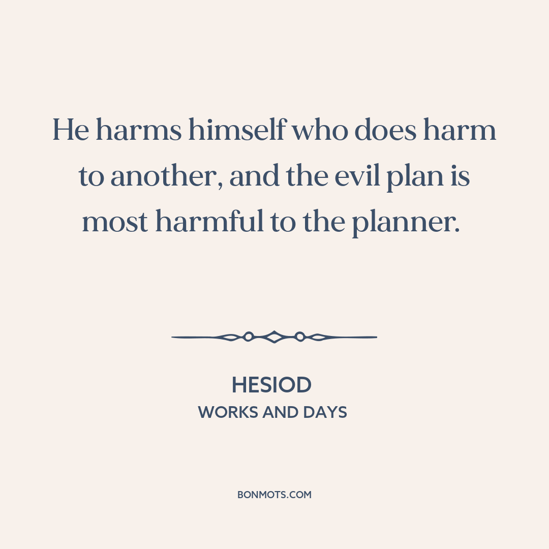 He harms himself who does harm to another, and the evil plan is most harmful to the planner.