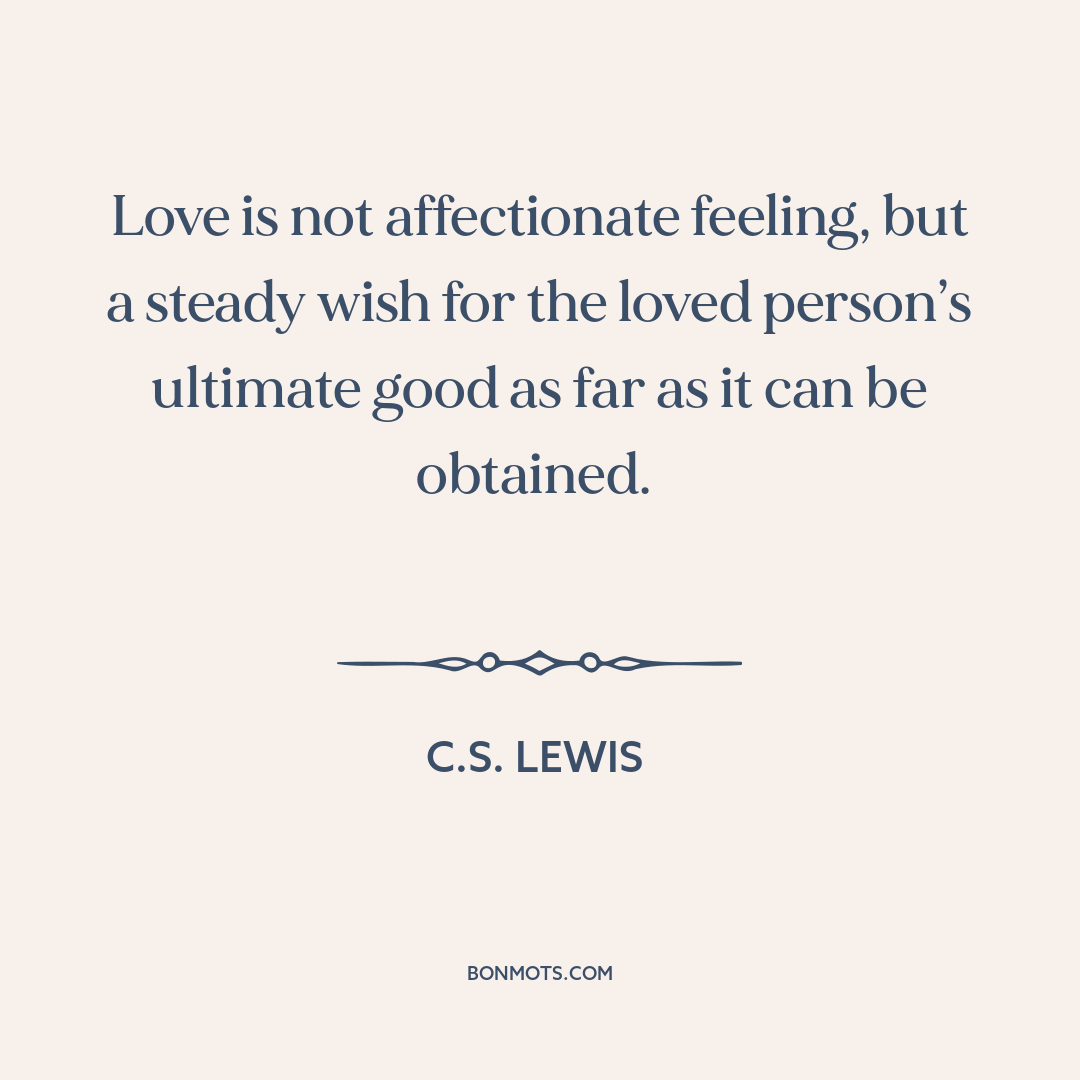 Love is not affectionate feeling, but a steady wish for the loved person’s ultimate good as far as it can be obtained.