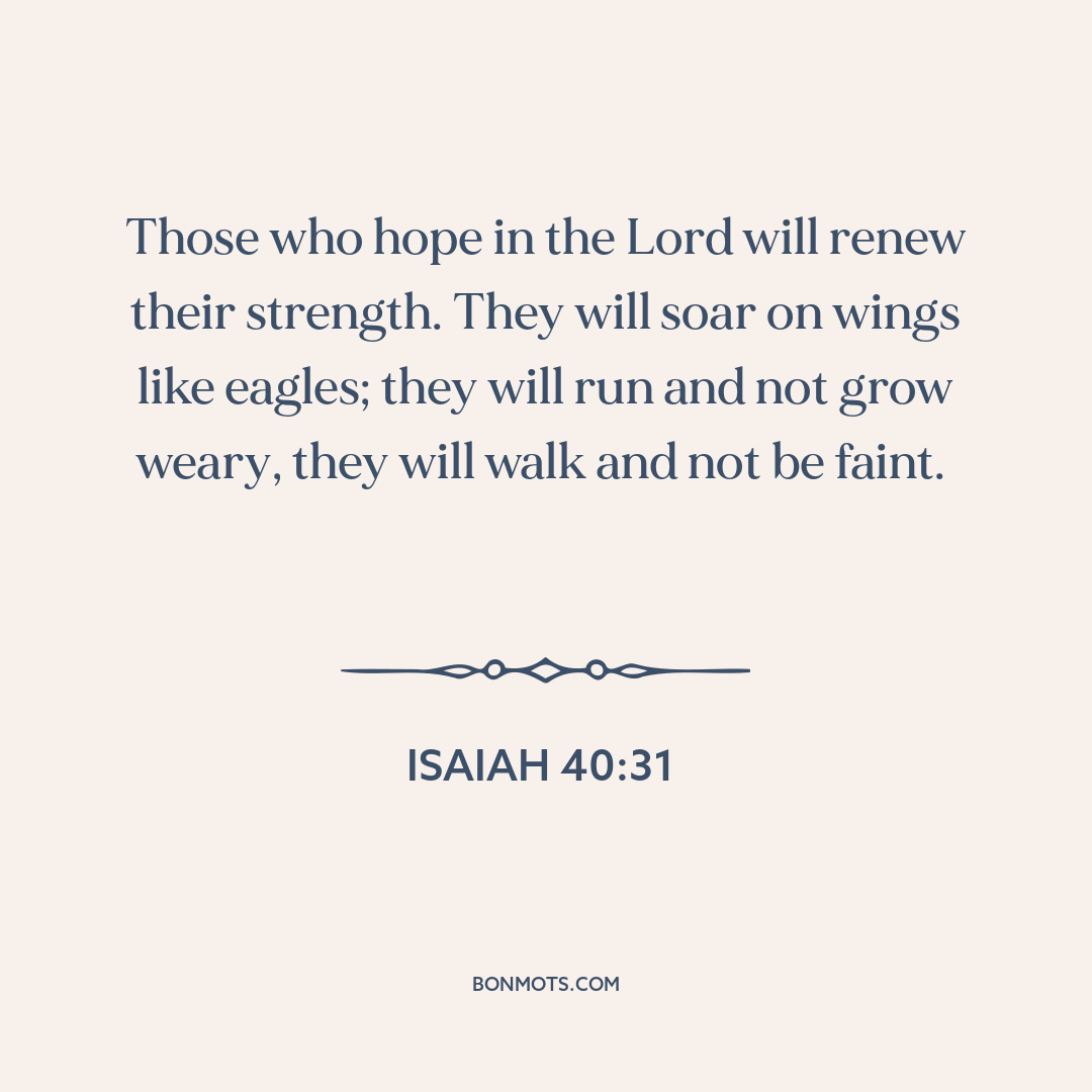 Those who hope in the Lord will renew their strength. They will soar on wings like eagles; they will run and not grow weary, they will walk and not be faint.