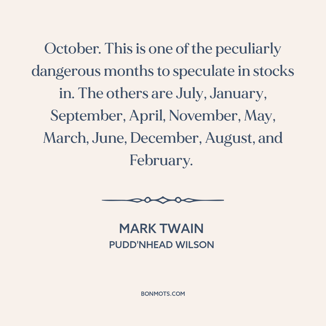 October. This is one of the peculiarly dangerous months to speculate in stocks in. The others are July, January, September, April, November, May, March, June, December, August, and February.
