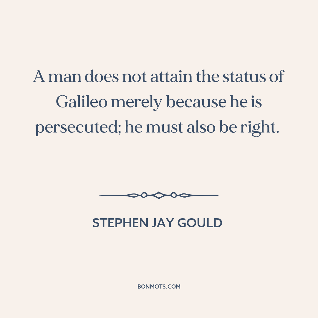A man does not attain the status of Galileo merely because he is persecuted; he must also be right.