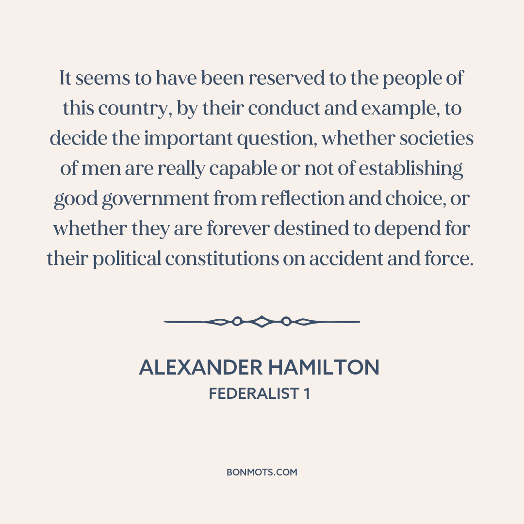 It seems to have been reserved to the people of this country, by their conduct and example, to decide the important question, whether societies of men are really capable or not of establishing good government from reflection and choice, or whether they are forever destined to depend for their political constitutions on accident and force.