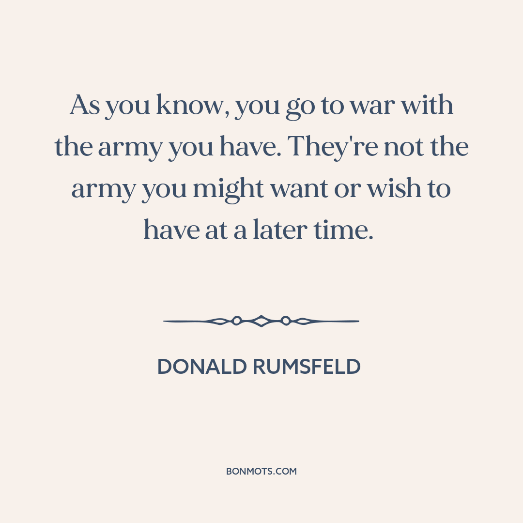 Rumsfeld, Donald. Remark about the lack of equipment in Iraq. 8 Dec. 2004, Kuwait.