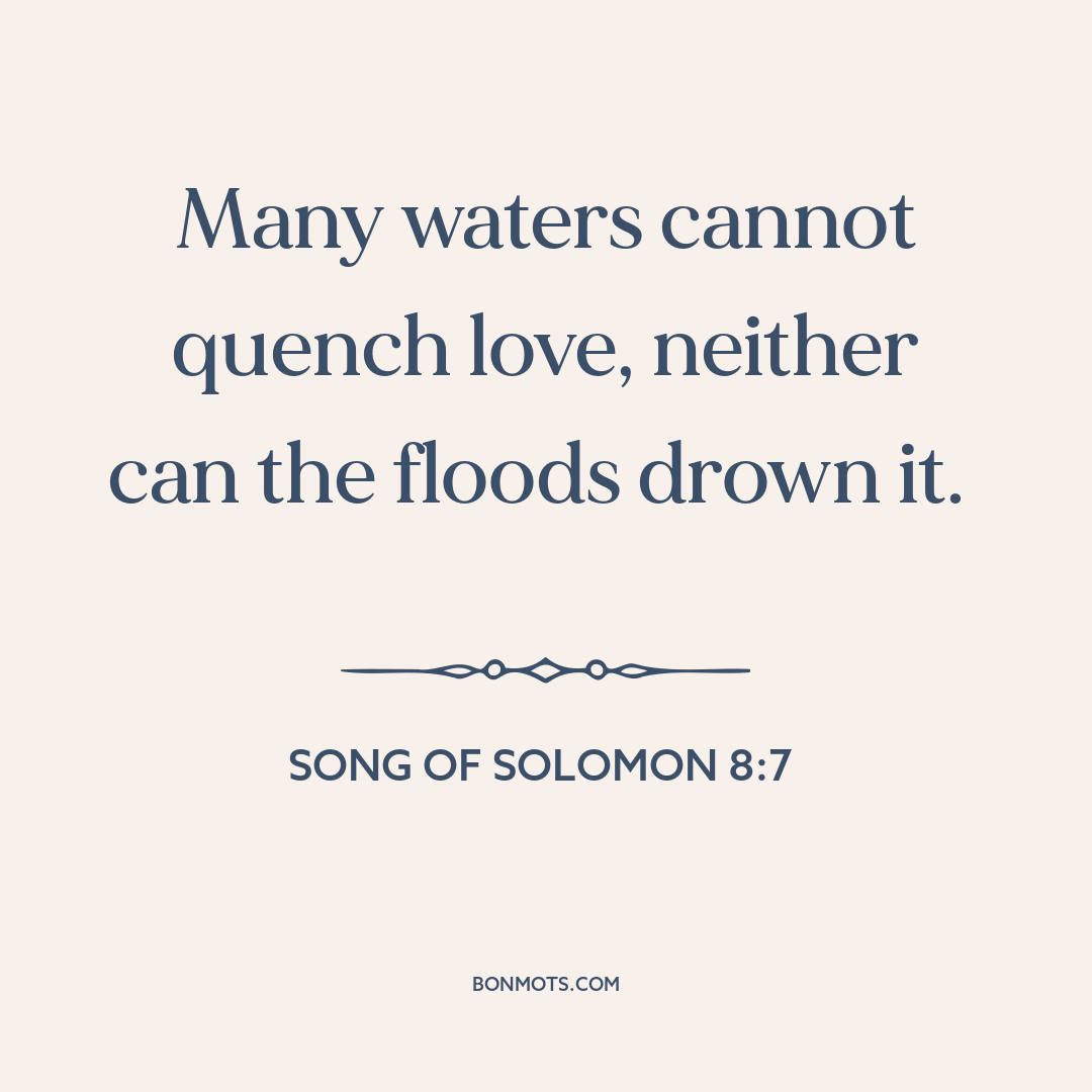 Many waters cannot quench love, neither can the floods drown it.