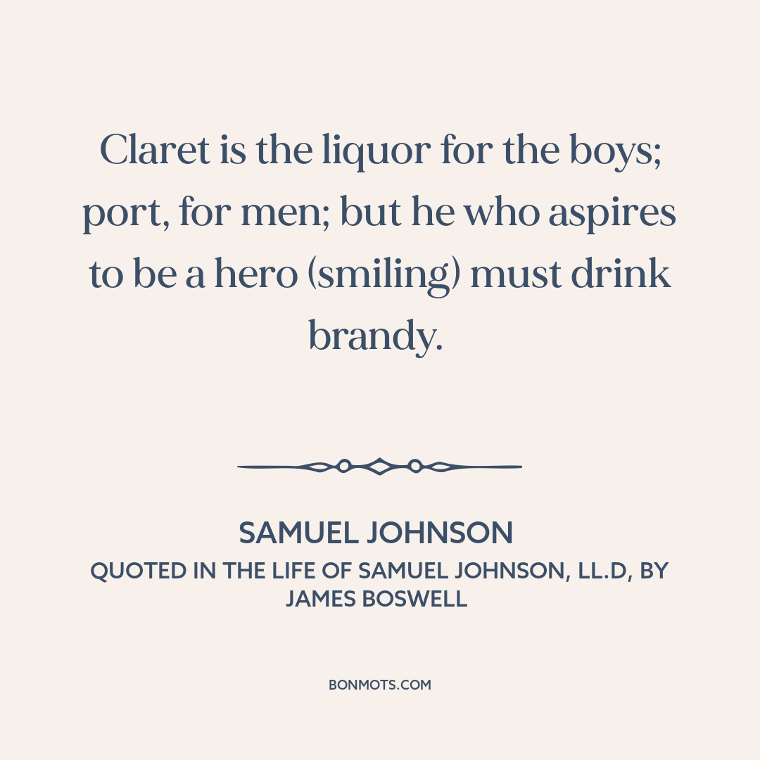 Claret is the liquor for the boys; port, for men; but he who aspires to be a hero (smiling) must drink brandy.