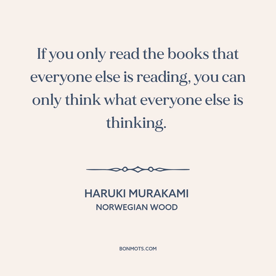 If you only read the books that everyone else is reading, you can only think what everyone else is thinking.