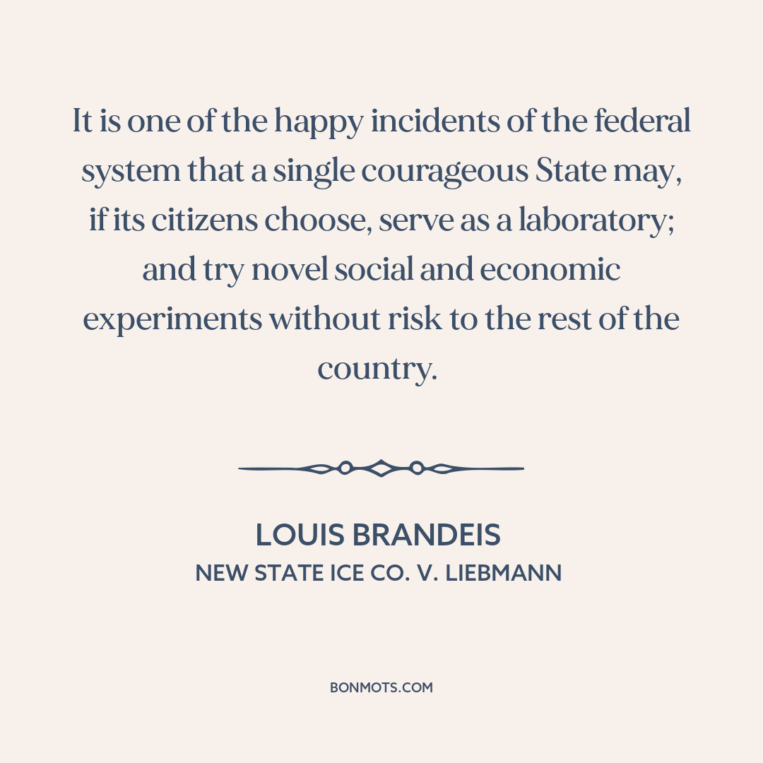 It is one of the happy incidents of the federal system that a single courageous State may, if its citizens choose, serve as a laboratory; and try novel social and economic experiments without risk to the rest of the country.