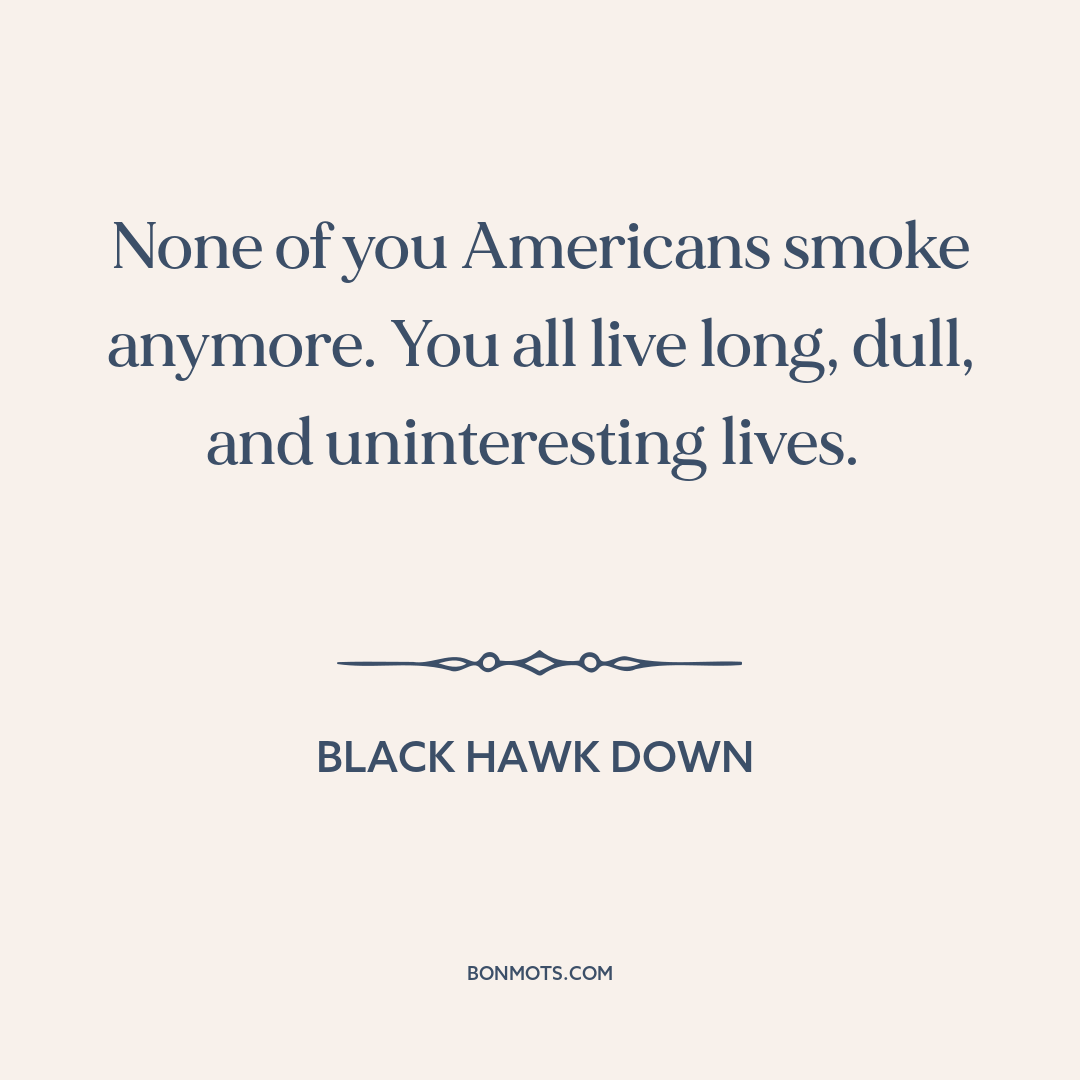 None of you Americans smoke anymore. You all live long, dull, and uninteresting lives.