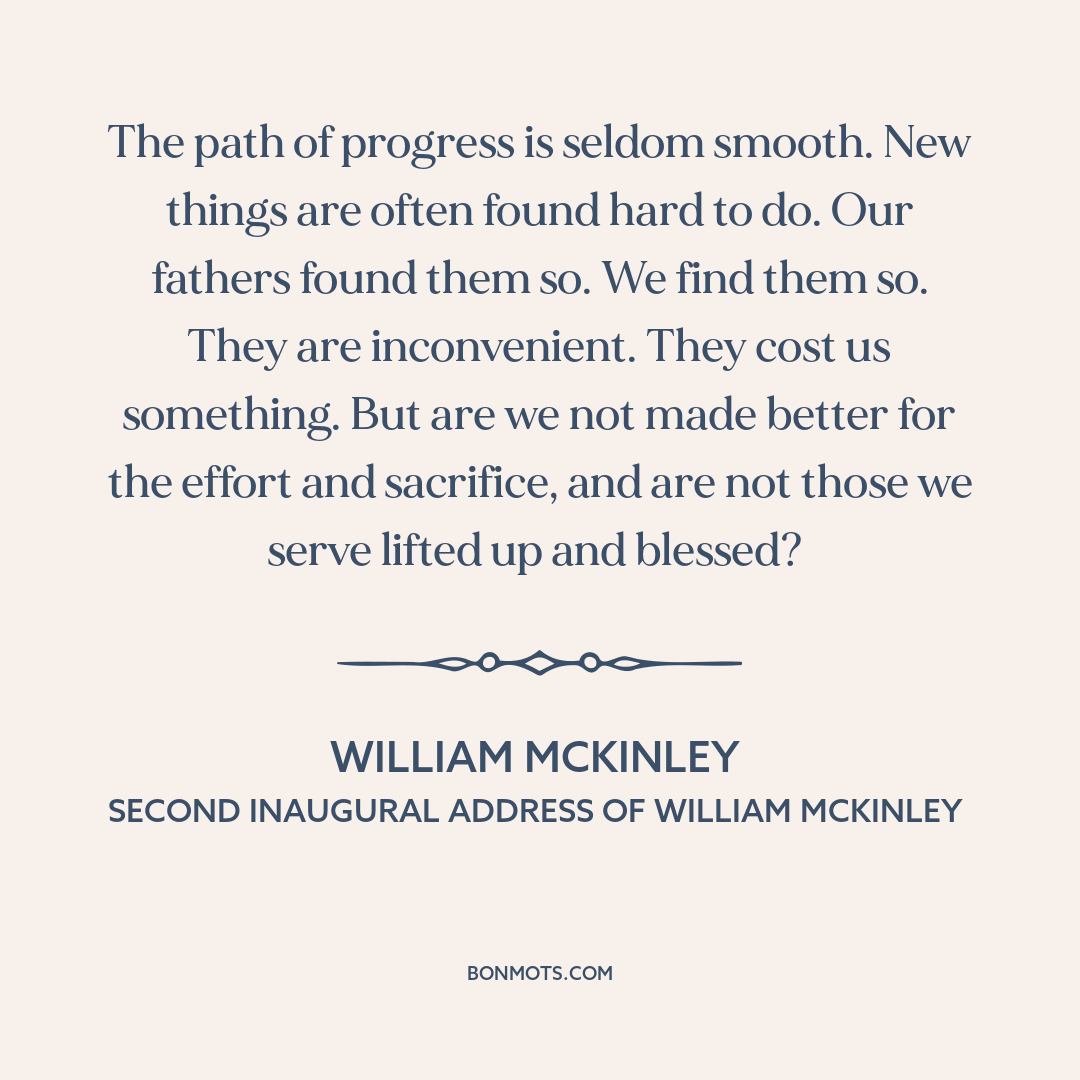 The path of progress is seldom smooth. New things are often found hard to do. Our fathers found them so. We find them so. They are inconvenient. They cost us something. But are we not made better for the effort and sacrifice, and are not those we serve lifted up and blessed?