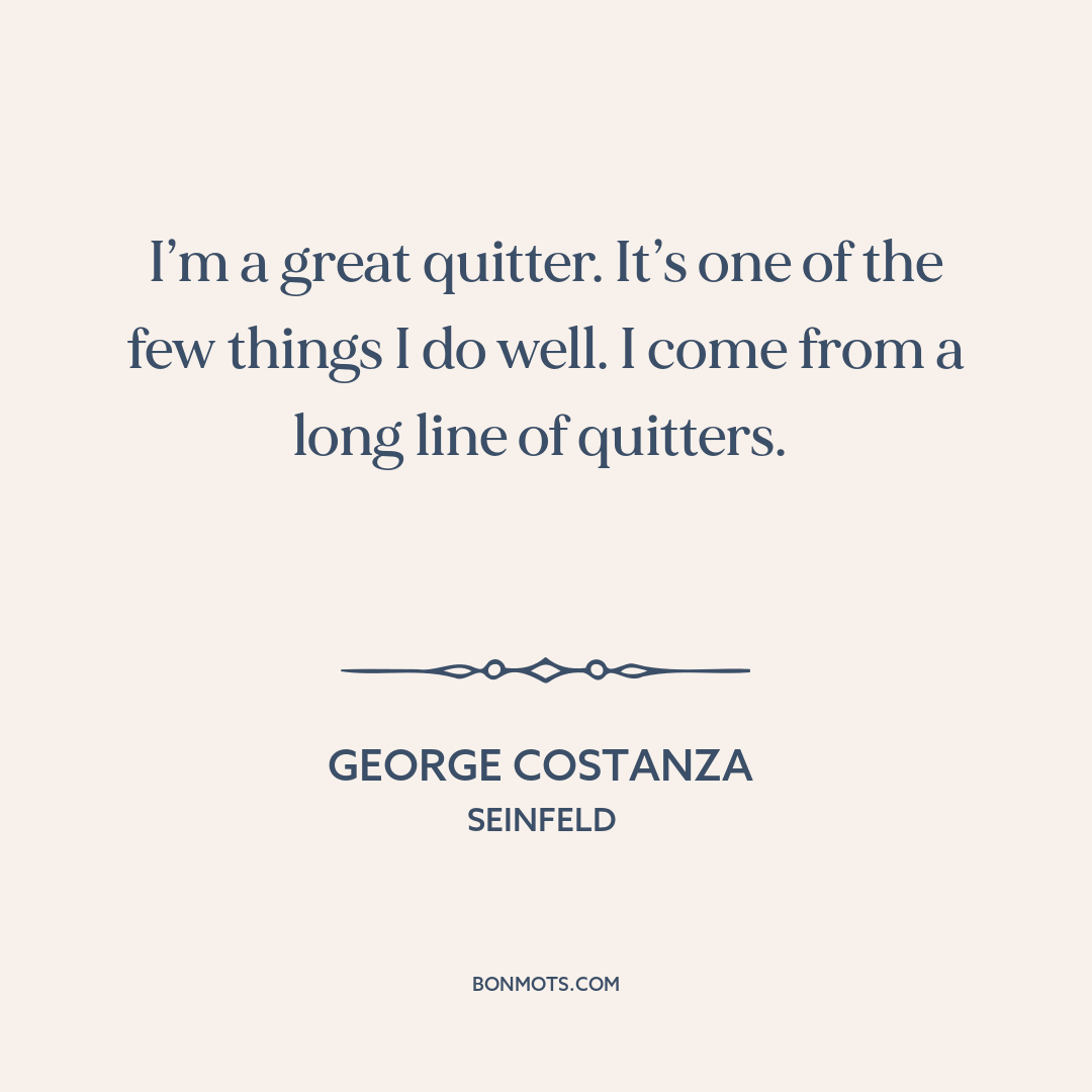 I’m a great quitter. It’s one of the few things I do well. I come from a long line of quitters.