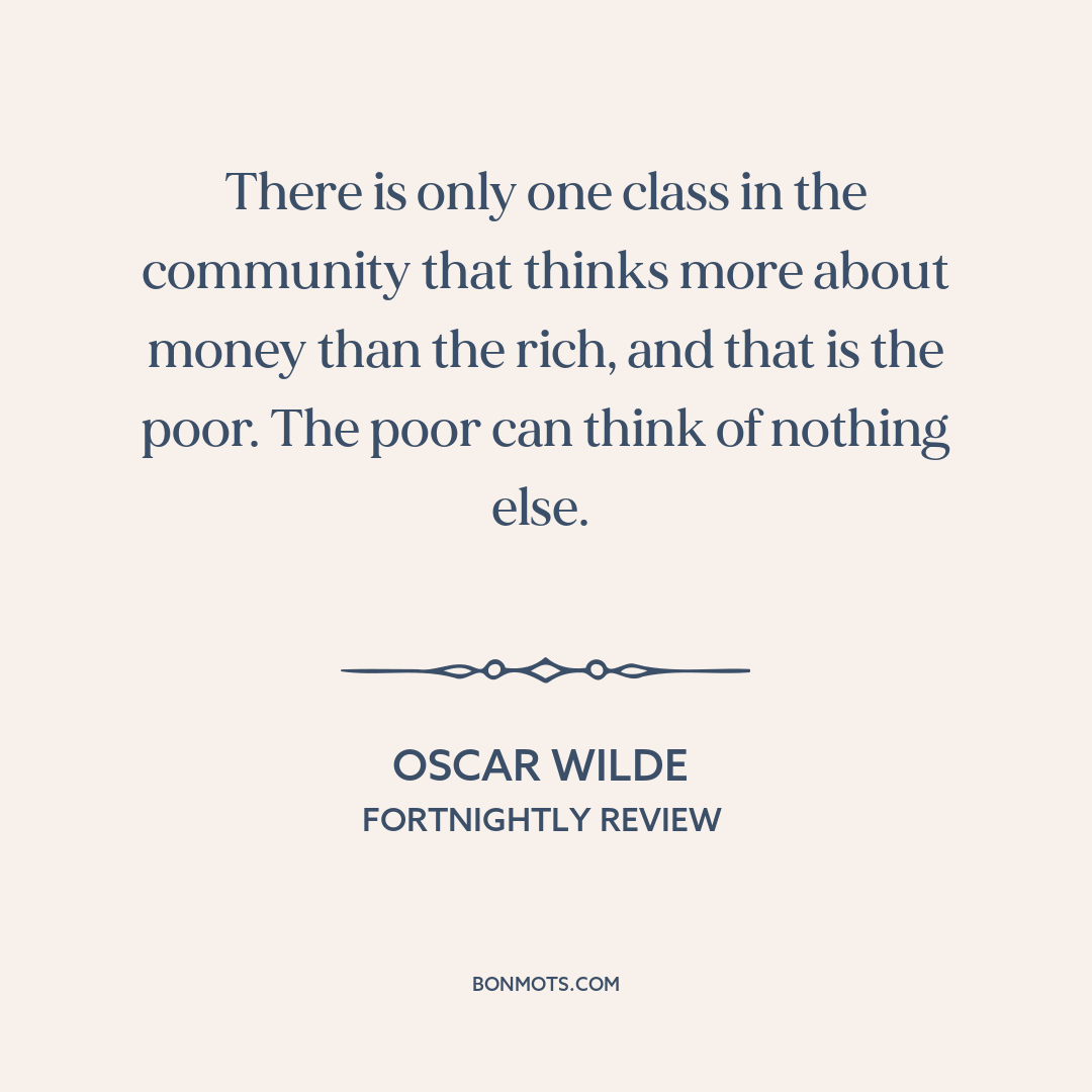 There is only one class in the community that thinks more about money than the rich, and that is the poor. The poor can think of nothing else.