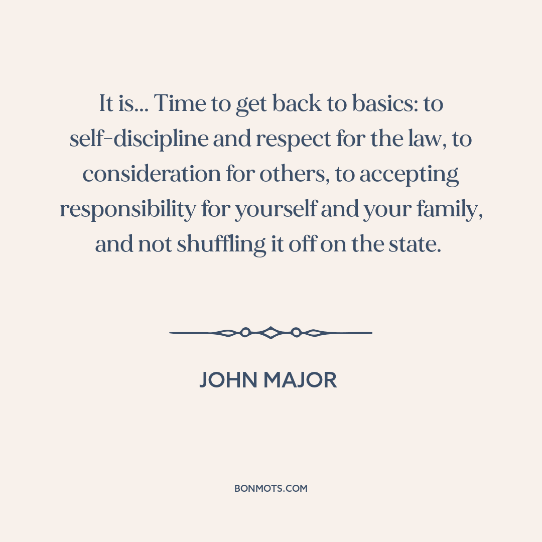 It is... Time to get back to basics: to self-discipline and respect for the law, to consideration for others, to accepting responsibility for yourself and your family, and not shuffling it off on the state.