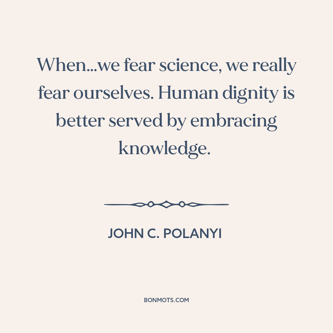 When…we fear science, we really fear ourselves. Human dignity is better served by embracing knowledge.