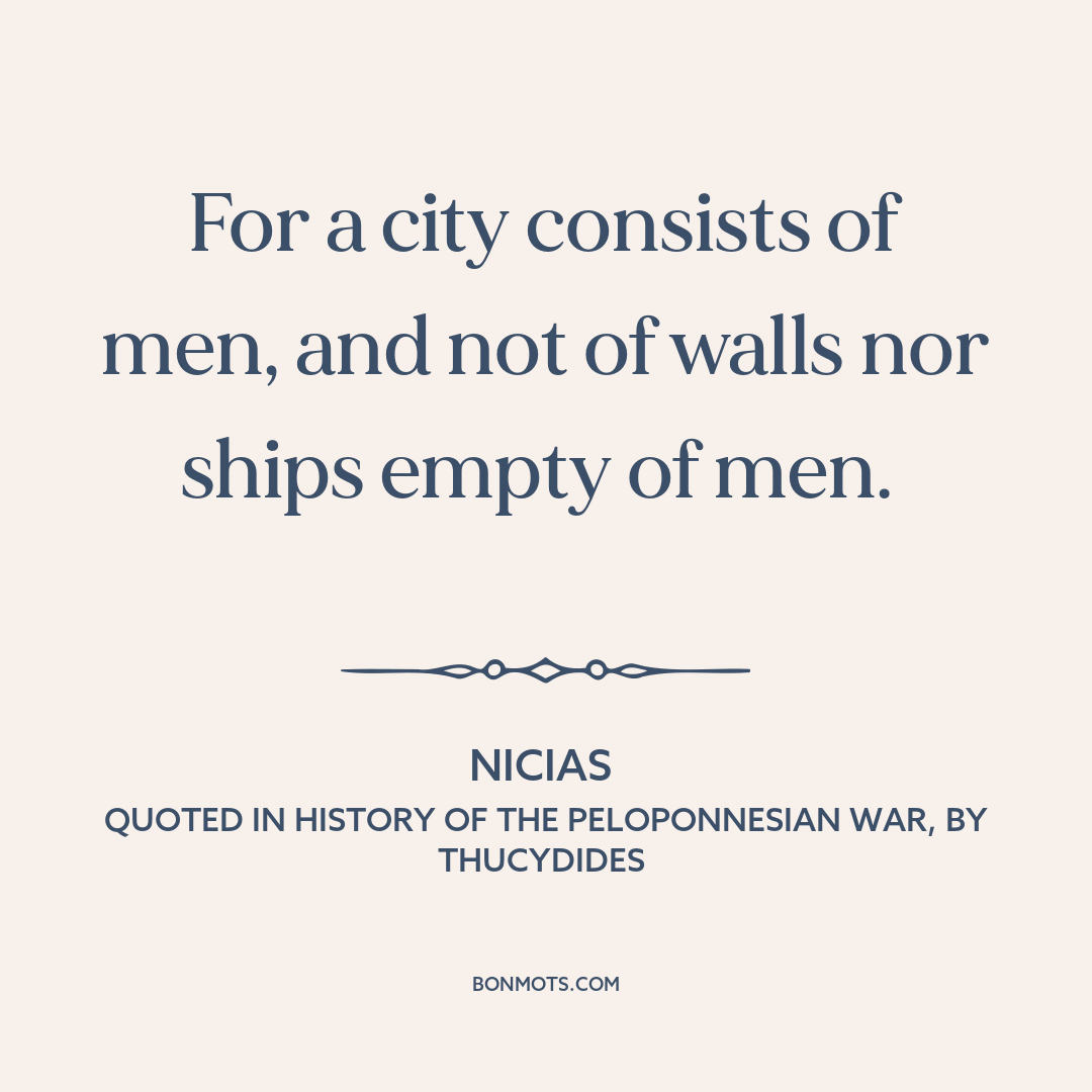 Nicias. Quoted in History of the Pelopponesian War, written by Thucydides. c. 405 BC, bk. 7.