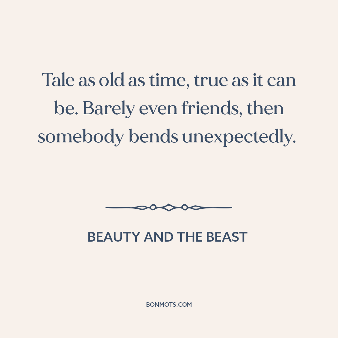 Tale as old as time, true as it can be. Barely even friends, then somebody bends unexpectedly.
