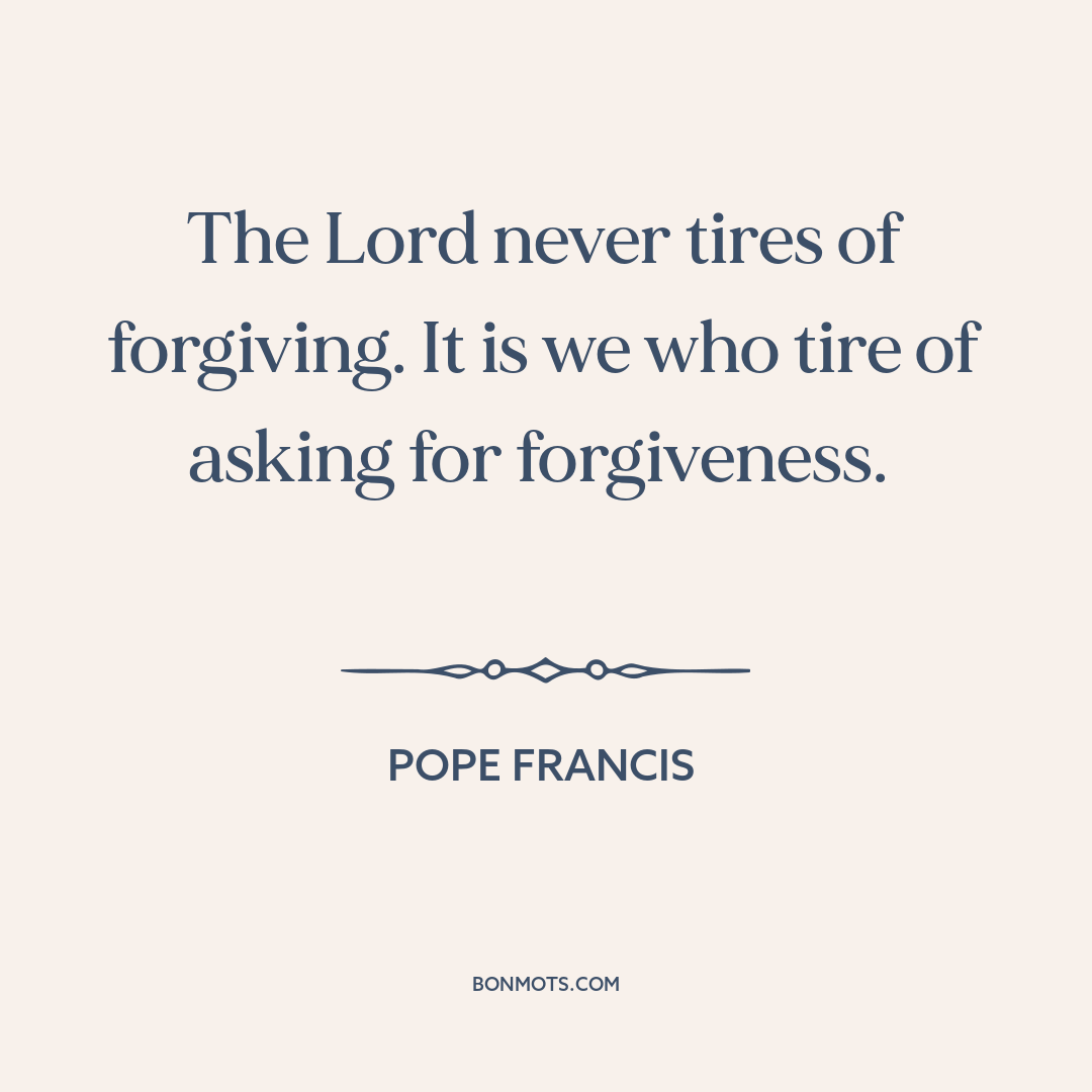 The Lord never tires of forgiving. It is we who tire of asking for forgiveness.
