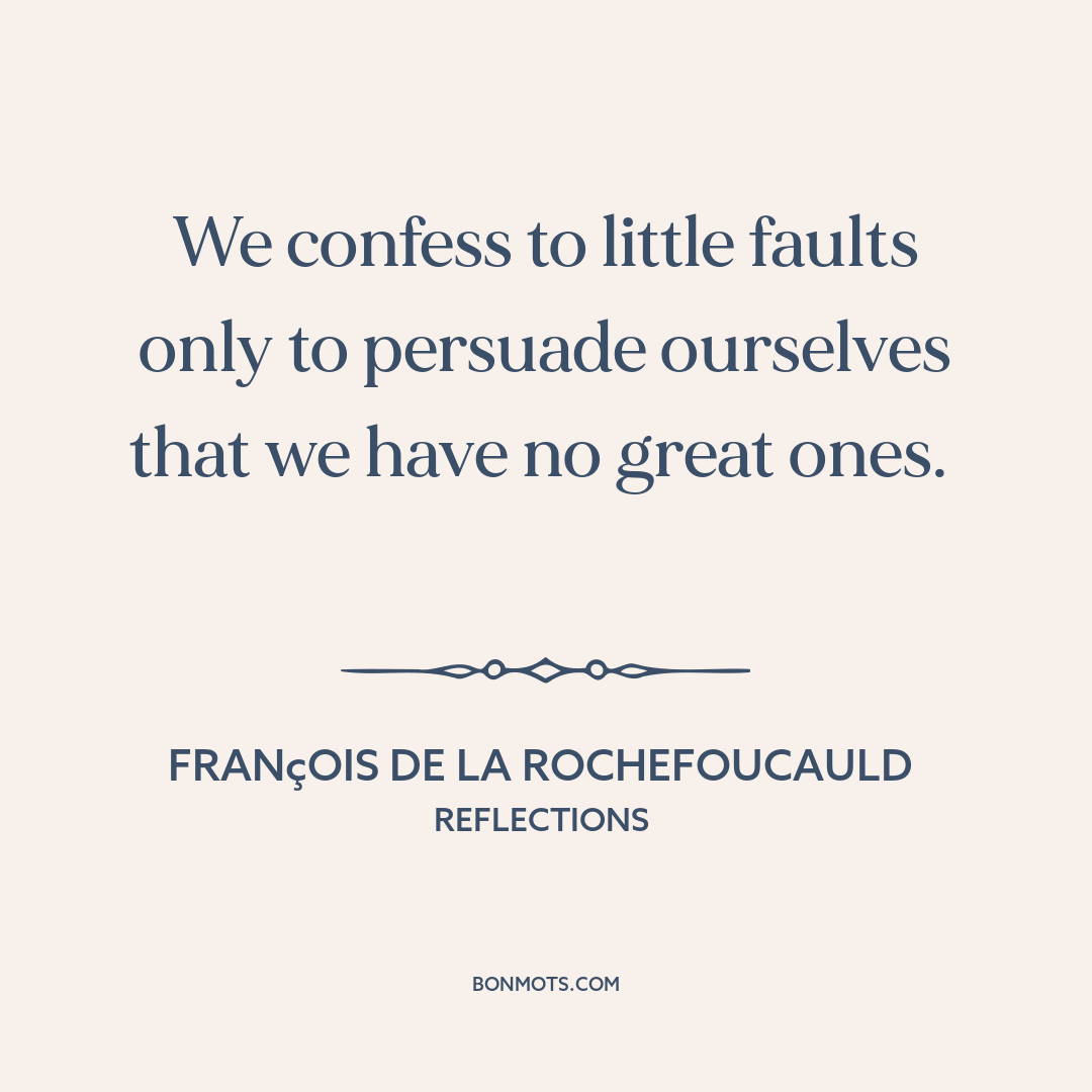 We confess to little faults only to persuade ourselves that we have no great ones.