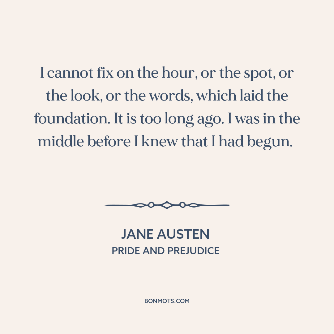 I cannot fix on the hour, or the spot, or the look, or the words, which laid the foundation. It is too long ago. I was in the middle before I knew that I had begun.