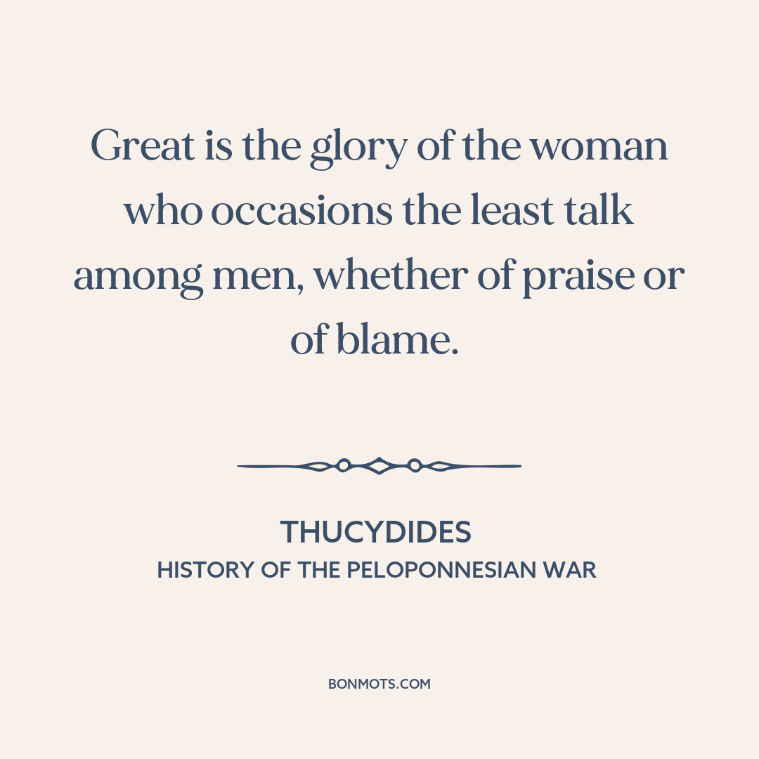 Great is the glory of the woman who occasions the least talk among men, whether of praise or of blame.