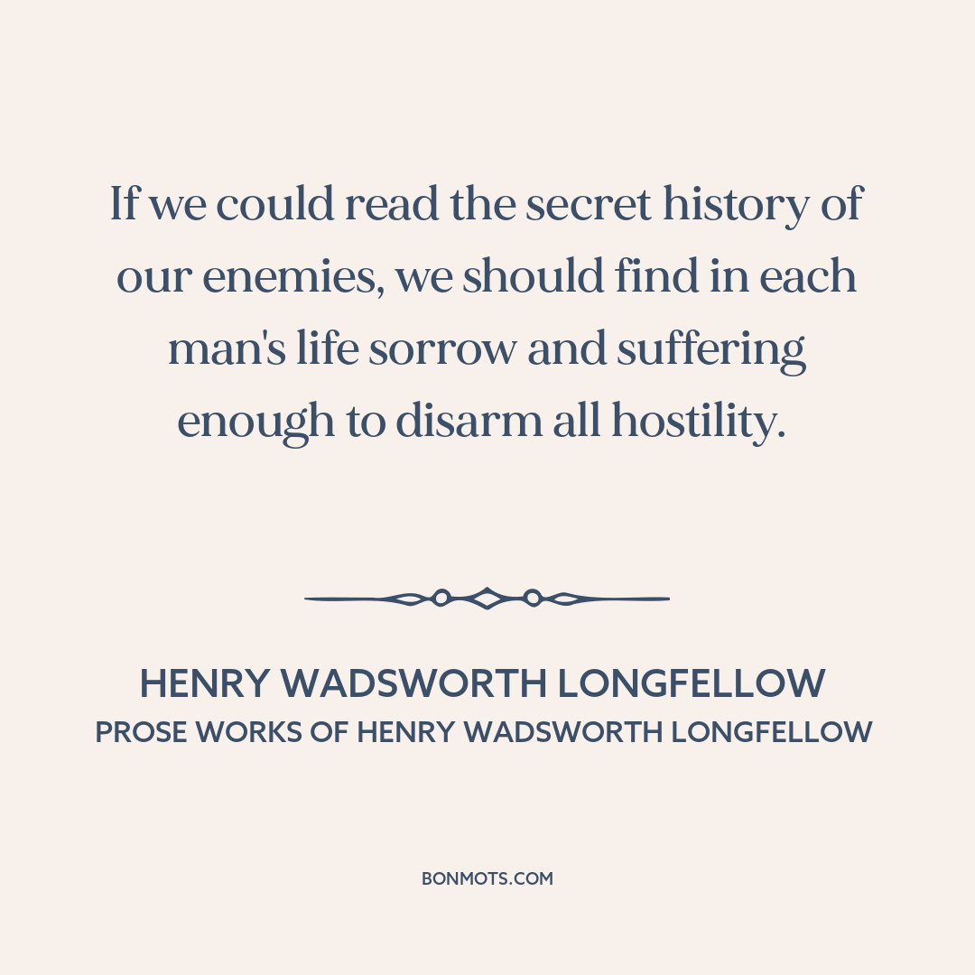 If we could read the secret history of our enemies, we should find in each man's life sorrow and suffering enough to disarm all hostility.
